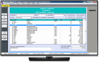 A summary of stock details in the business is depicted chronologically in the Stock Summary window with details of quantity, purity and weight of ornaments including the total stock weight and stock quantity. Purity wise and item class wise stock report can be generated easily by clicking in the corresponding options seen on the top of the window. Date Wise Stock report is another feature available on the stock summary window; it will help the users to cross check the stock of previous dates by giving the respective dates on which stock report is taken. There is lot of useful buttons available on the left of the window having great functionality for the users; it can be used for various purposeful needs.