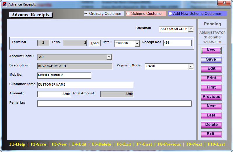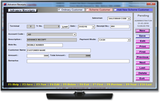 In the business of jewelries customers are always transacting with the help of giving advances to buy something they are interested on. So these advances are need to be efficiently accounted in the software, thereby we created an additional module for entering these transactions effectively. Here advance from the customers are entered with the details of their name, mobile number, receipt number, date, payment mode whether it is in liquid cash, or cheque etc… This advance can be automatically processed accordingly while entering the sales invoice bill against the customers they already given the advance. Various advance schemes can be used with this advance receipts window by clicking on the Scheme Customer feature seen on the top of the window.
