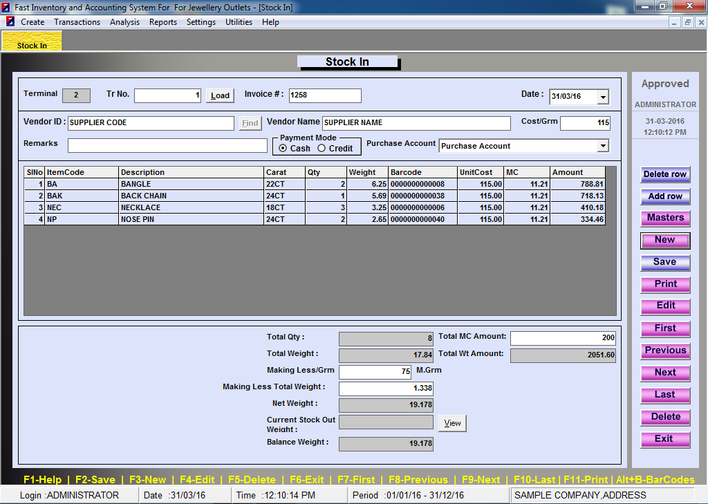 In this era of world jewelleries are making a good impact on various field, that is why we are extended our services to jewellery industries also, thereby they can attain and remain updated and well performed in their business. Fast Inventory & Accounting System for Jewelleries concentrated on fulfilling the needs and requirements of jewellery based accounting, that’s why we already includes specialized modules like purity wise stock and sales details, various schemes for advance receipts, Stock in and stock out entries, specialized dump labels for barcodes etc.