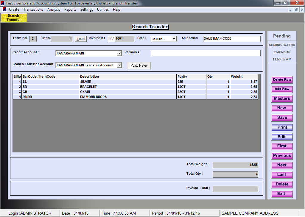 If you have multiple outlets or branches all over the world, you can transfer stock items from one branch to another branch by entering the respective items in the Branch Transfer entry. Quantity of Stock will be affected accordingly in the two outlets automatically. This feature is very helpful for those users they are using centralized software for their accounting works.