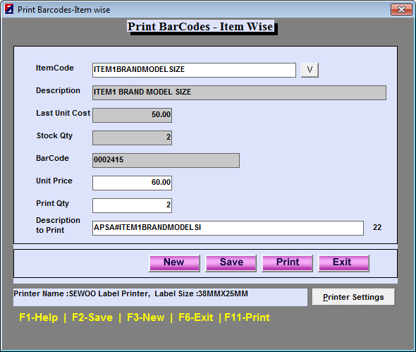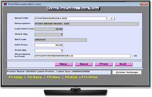 Varieties of barcodes with various sizes can be printed for scanning the items, particularly the normal sizes 38x25mm, 26x15mm, weighing labels 58x39mm, dump labels 65x15mm, jewel tag 83x37mm etc… In the case of super markets they can use this option accordingly to print barcodes for different shelf, barcodes for weighing items such as vegetables & fruits and jewelry items also. Users can set company name, selling price, cost code, barcode bottom name, number of lines for item description, number of decimal places in cost code, and extra currency in barcode labels according to their requirements.