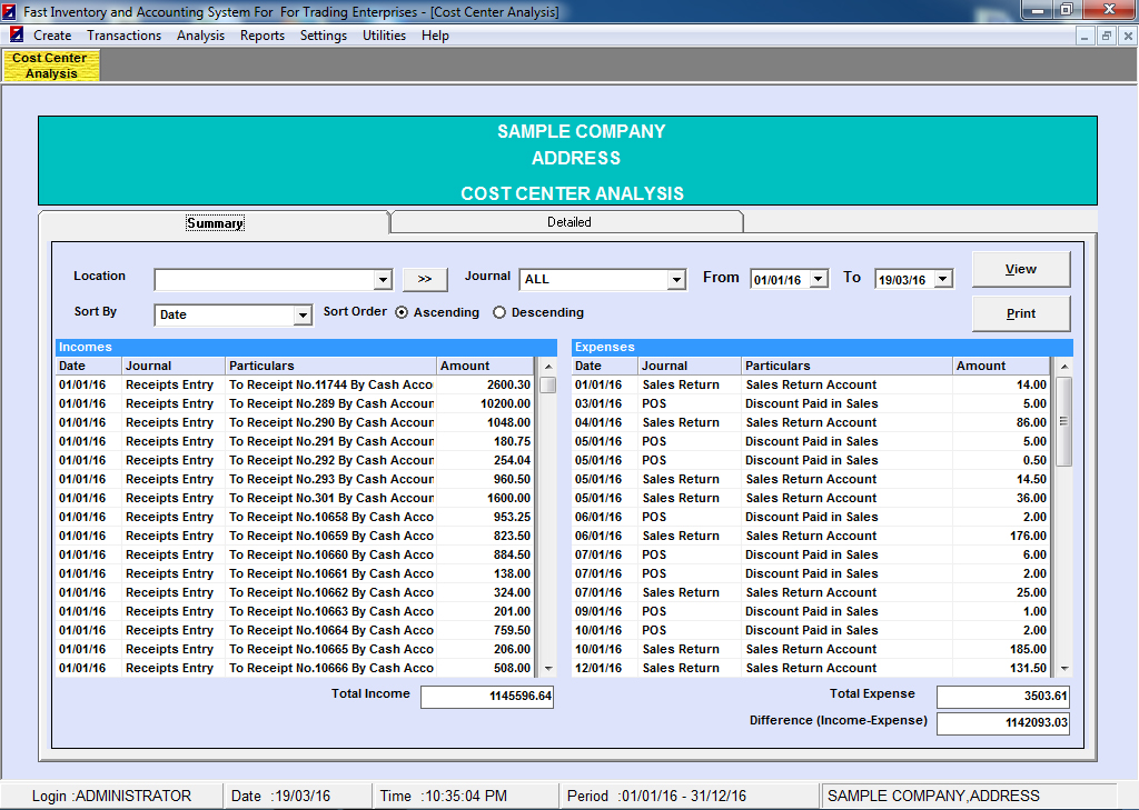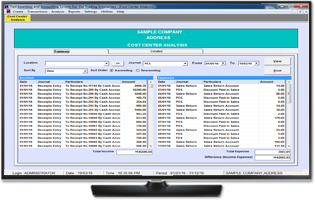 Application of cost centers is a good technique for differently analyzing prioritized elements of business. Now a days most of the advanced users largely using this feature for understanding profitability and efficiency of each department or section of work in their business unit. Separate reports on each unit of work regarding the efficiency can be attained, and there by problems and loopholes can be easily track out and immediate remedial measures can be taken. You can get a report from this window as subtracting total income generated by each cost center from corresponding expenses.
