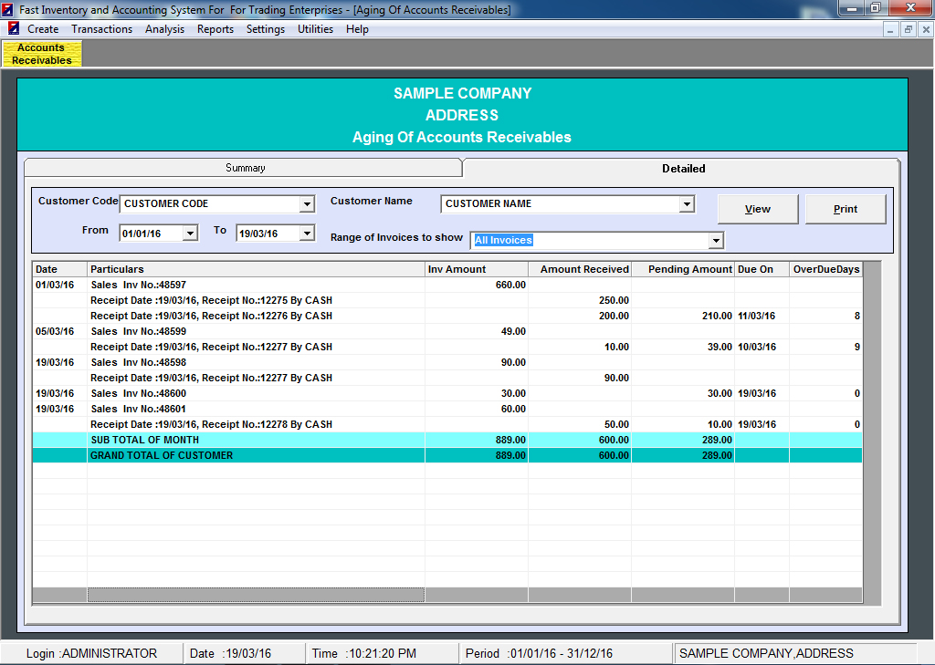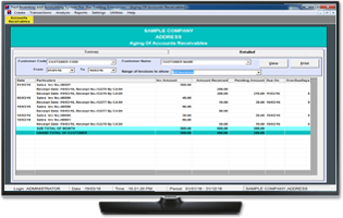 The balances of accounts receivables is systematically ordered according to the age of transaction through corresponding details of bills generated. Here a report of pending bills of customers can be retrieved with specific bill wise details. Due date and overdue days of bills are also shown on the reports, so overdue bills can easily tracked and right decisions can be taken accordingly.