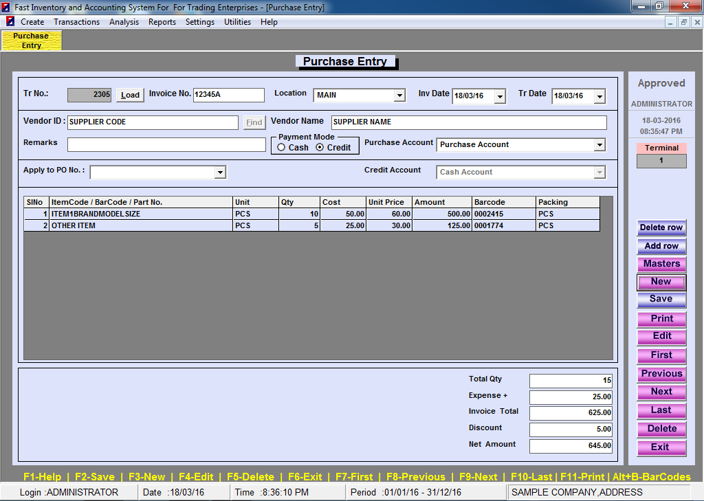 The items you bought from the vendors or suppliers all over the world can feed on the purchase entry with its name, barcode, part no if any, by providing the quantity purchased and the cost. Besides all of these, there is facility to locate items to separate locations or godowns, enter bills of foreign currency, enter additional expenses related to the purchase bill etc… Transformation of purchase order into purchase, purchase into sales, and purchase into delivery note and Performa invoice direct from the purchase entry is an added advantage for the users. Expenses related to the purchase bill can be easily allocated to the cost of corresponding items by most of three calculation methods, namely based on value, based on quantity and manual entry.