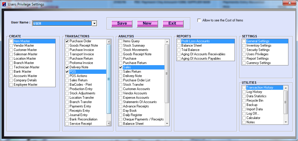 An administrator powered user can allocate available privileges to other users according to his/her discretion, so security and privacy in the use of application can be attained and some of the works can be easily delegated . Most of the administrator users make the use of this feature for delegating routine transactions and entries to other users, so they can concentrate on other core important projects.