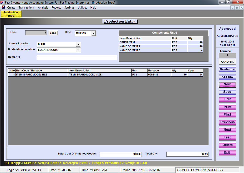 We are also taken consideration for production units also; here users can preset raw materials and quantity needed for production of specific quantity of items. The stock of raw materials will be reduced accordingly when you enter the stock of finished goods in the production entry. Total cost of the finished goods will be automatically taken by the system by looking into the cost of items and quantity used for production. Factories and other large manufacturing units are making use of this transaction for keeping efficiency and accuracy in the maintenance of raw materials and finished goods.