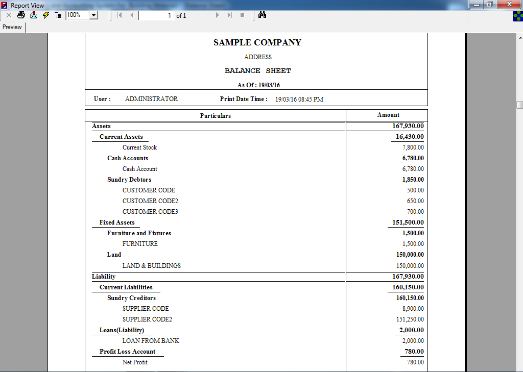 Operating condition of a business enterprise is always measured with profit & loss account, that’s why all the business entrepreneurs demands the preparation of profit & loss account monthly or yearly. We developed a good format of the same, containing all the details about the purchases, sales, returns, expense, incomes etc… Gross profit and net profit are automatically and scientifically calculated by the system itself by adding and subtracting these business expenses. Right decisions and planning for the future can be undertaken by the analysis of this report.
